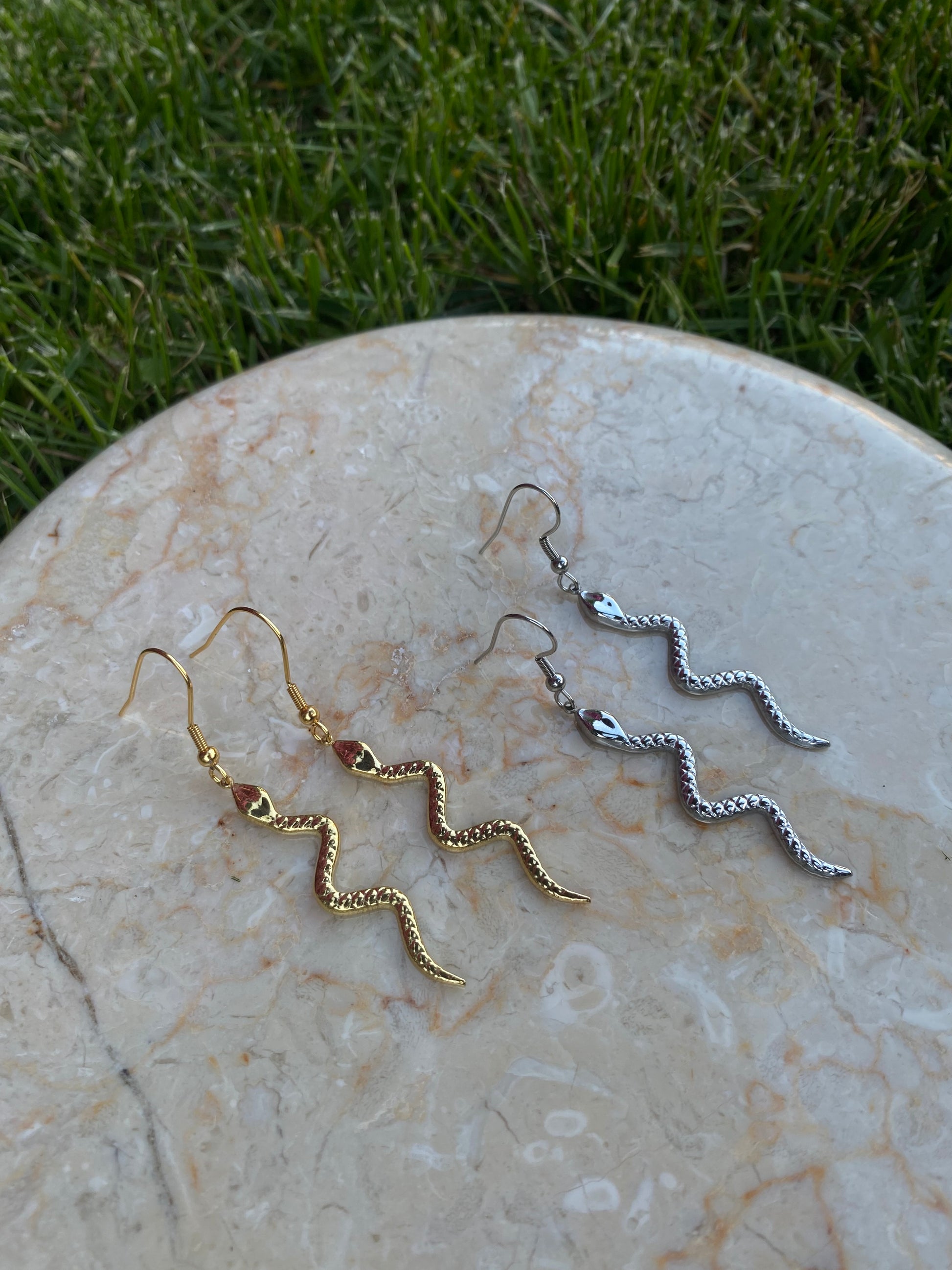 Gold or silver colored stainless steel snake earrings